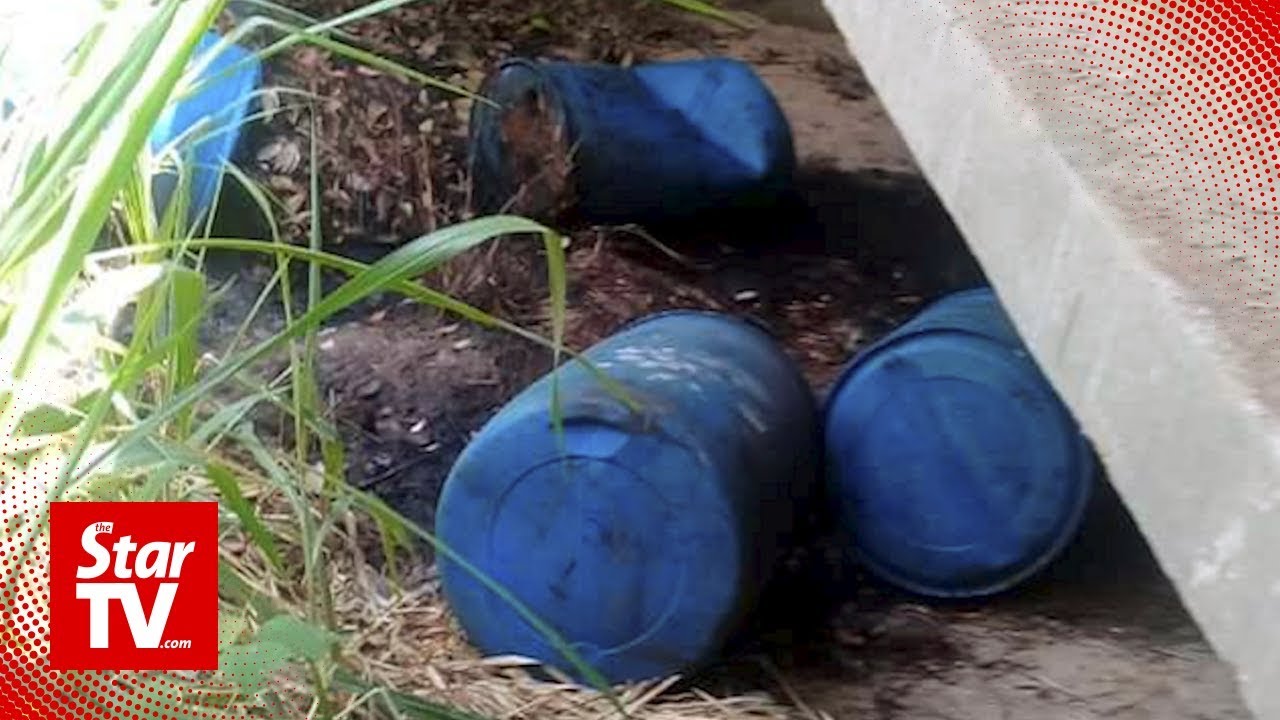 Five blue barrels, believed to contain chemicals, have been discovered near Sungai Sembilan at the Taman Tanjung Puteri Resort, which is just 2km away from Sungai Kim Kim.