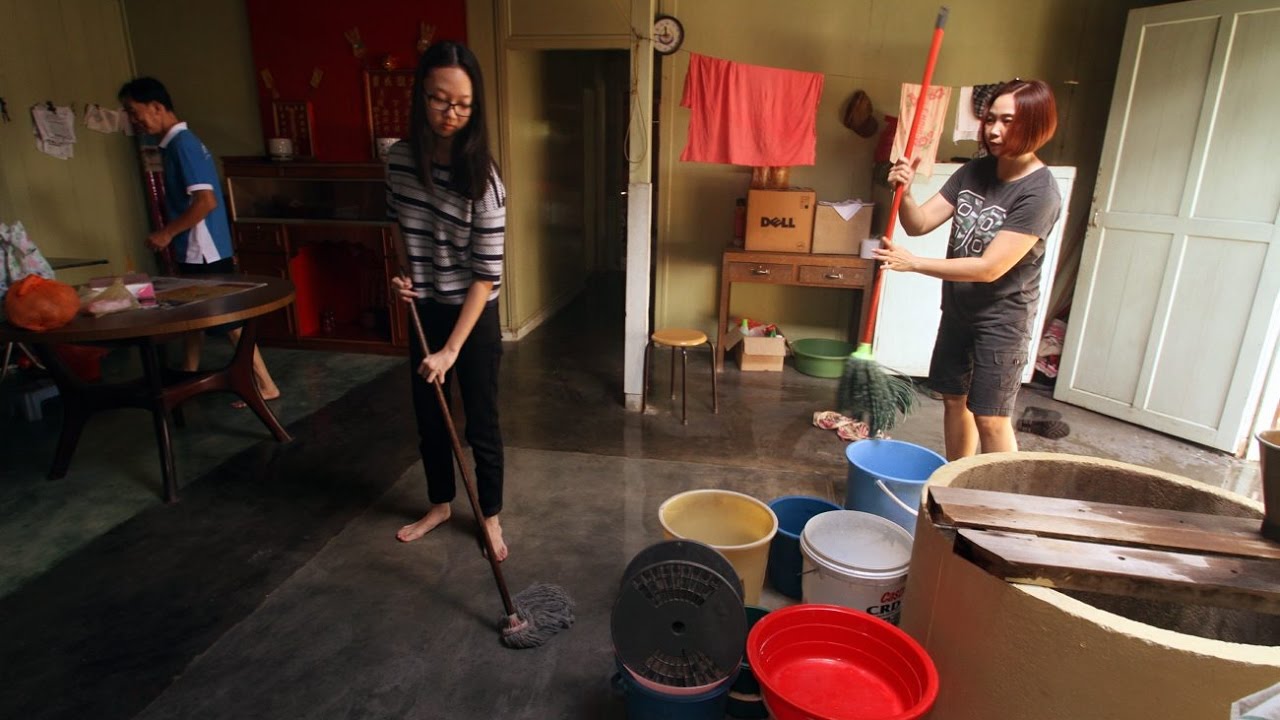 The Chinese New Year preparation still continues for six families affected by the floods in Chenderong Kelubi, Beruas. The families are at work cleaning their houses in time for the reunion dinner.