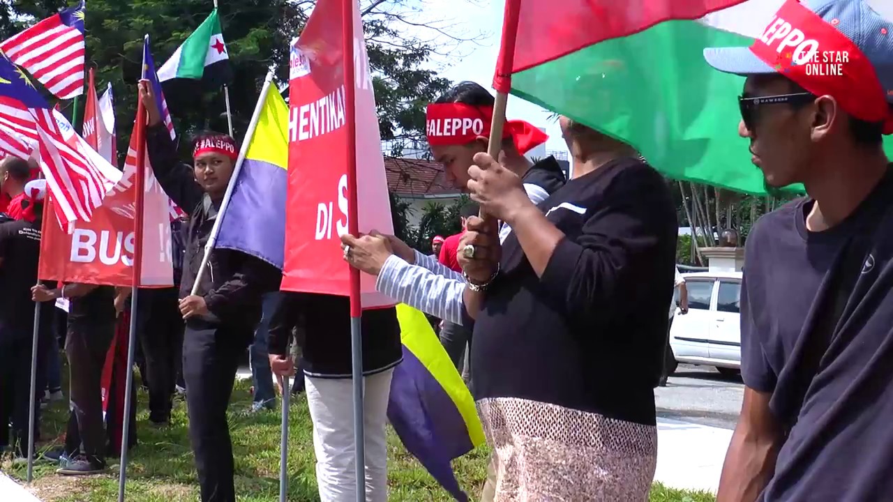 A large crowd of Malaysians and Syrian Muslims gathered in front of the Russian Embassy on Friday, demanding the Russian government to cease attacks on civilians of Aleppo. During the protest, organizer Aman Palestin submitted a memorandum to a representative of the Russian Embassy.