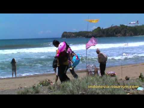 This beach is stunningly beautiful. The sea water has turquoise color and strong waves, typical of Indonesian south sea. Moreover, the greenish nuance is also can be found around the hill in the next side of the beach.
